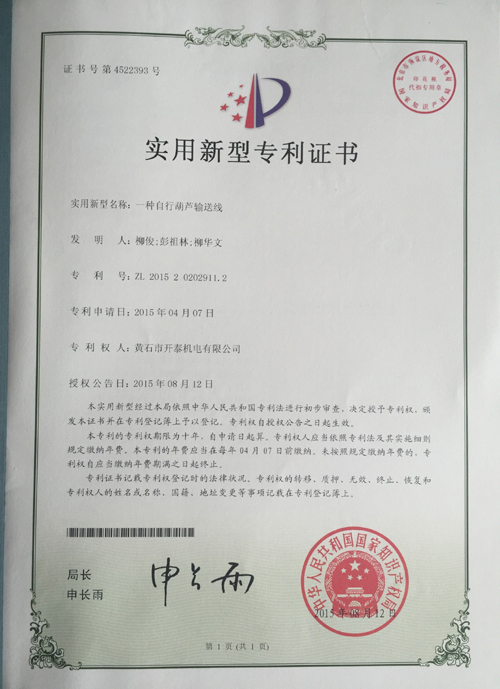 我公司“自行小車輸送系統(tǒng)”獲得國家專利